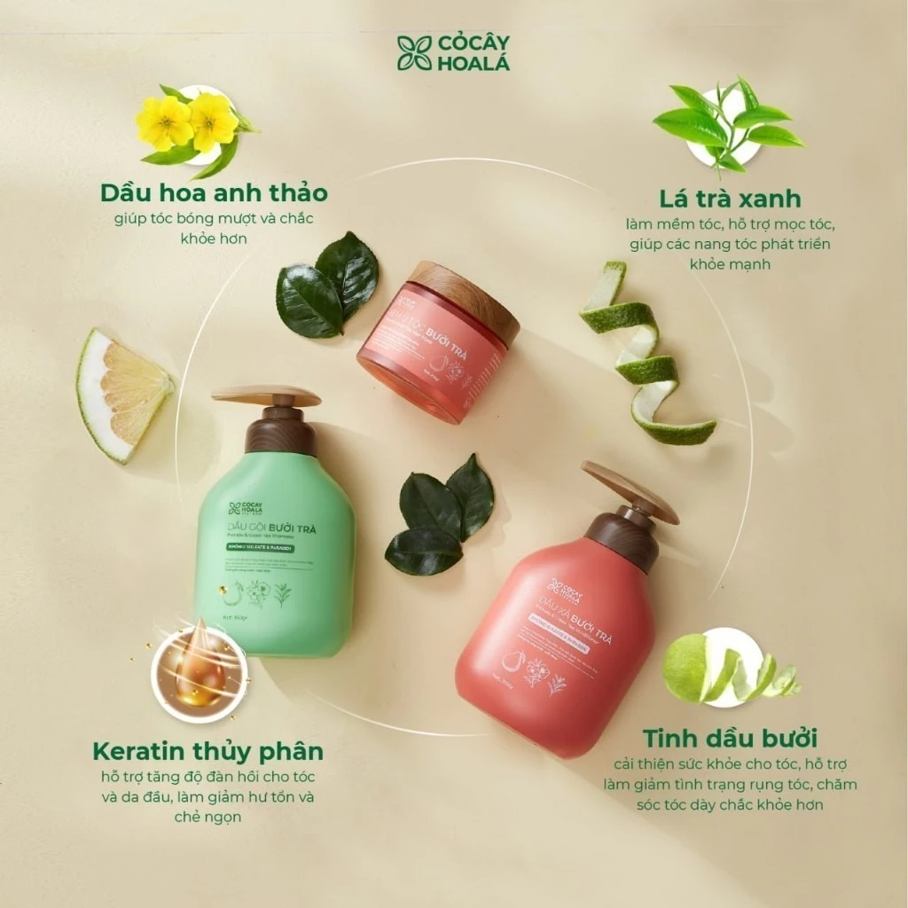 Combo Dầu Gội Xả Thảo Dược Cỏ Cây Hoa Lá Bưởi Trà được phát triển dựa trên bí quyết dưỡng tóc truyền thống của người Việt, khi tinh dầu bưởi và lá trà được sử dụng để gội đầu giúp tóc chắc khỏe và dài mượt tự nhiên. Cỏ Cây Hoa Lá đã nghiên cứu và hiện đại hóa phương pháp này, kết hợp công nghệ chiết xuất tiên tiến để giữ trọn vẹn tinh chất tự nhiên trong từng giọt dầu gội và dầu xả. Sản phẩm là sự giao hòa giữa truyền thống và khoa học, mang đến giải pháp chăm sóc tóc hiệu quả, an toàn và phù hợp với khí hậu, đặc điểm tóc của người Việt.