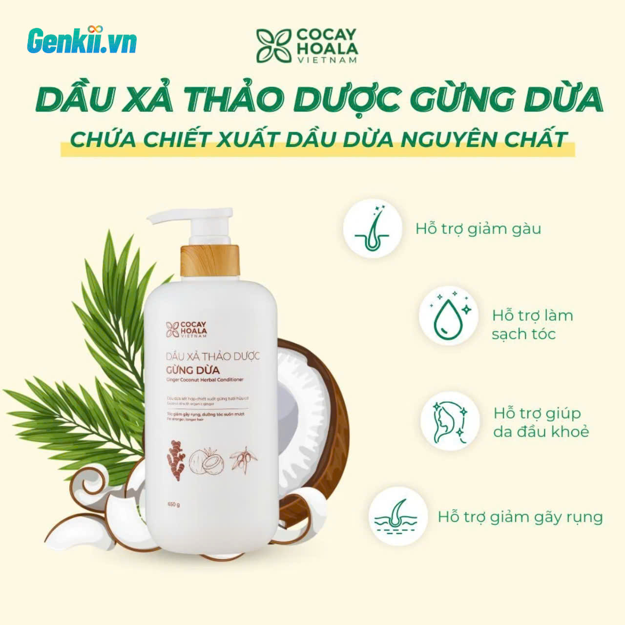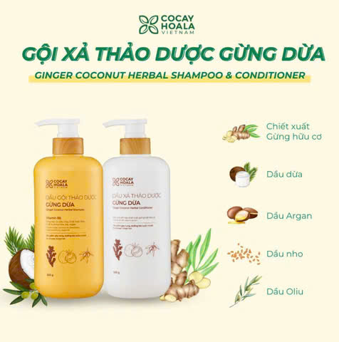 Combo Dầu Gội Xả Thảo Dược Gừng Dừa Cỏ Cây Hoa Lá là sự kết hợp hoàn hảo giữa hai bước chăm sóc tóc cơ bản nhưng cần thiết: làm sạch và dưỡng sâu. Lấy cảm hứng từ công thức chăm sóc tóc truyền thống của người Việt, sản phẩm sử dụng tinh chất gừng tươi và dầu dừa nguyên chất giúp phục hồi tóc yếu, khô xơ và chẻ ngọn. Bộ đôi này không chỉ giúp mái tóc sạch khỏe mà còn mang lại độ mềm mại, suôn mượt tự nhiên và hương thơm thảo mộc dễ chịu.
